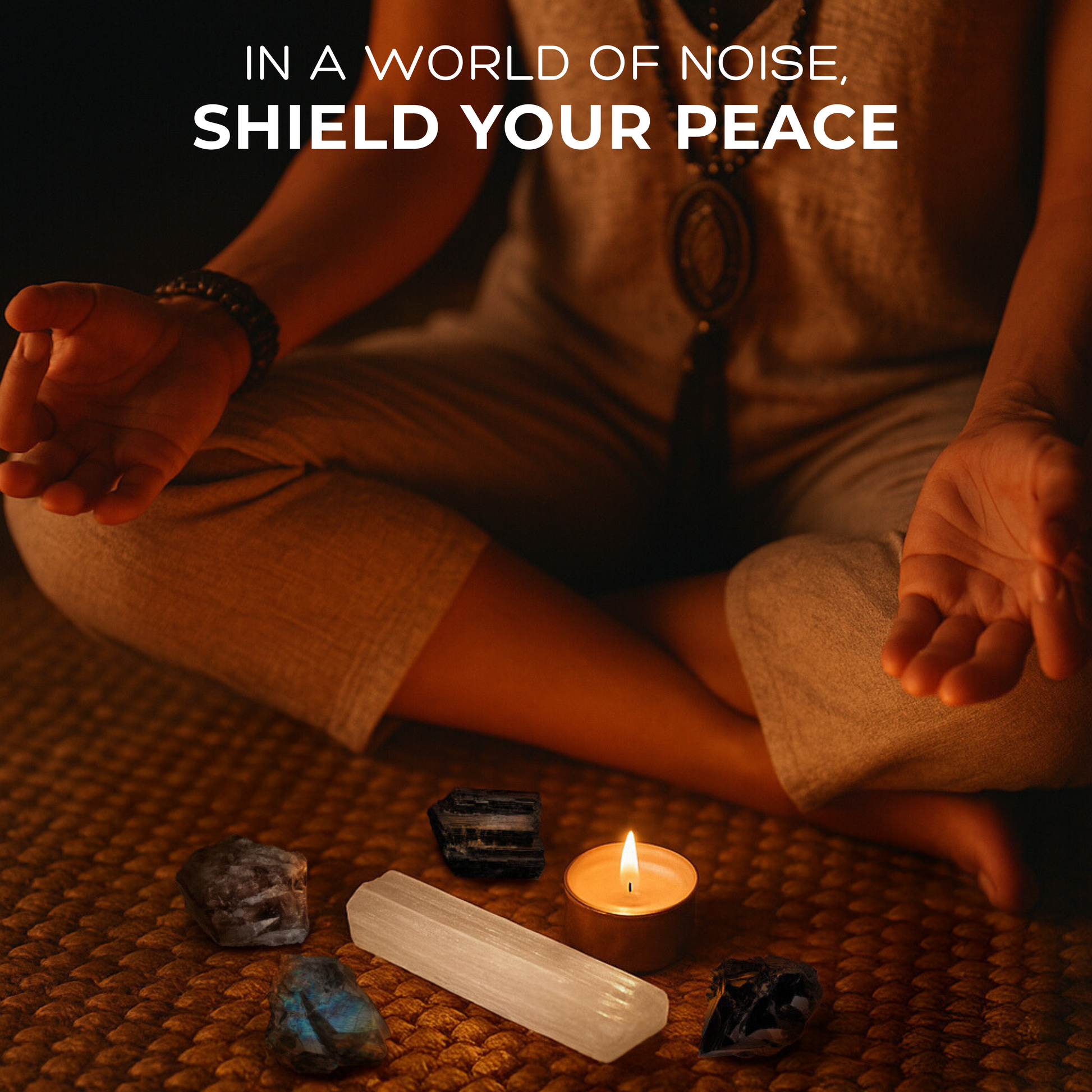 SHIELD, GROUND & TRANSMUTE - Five sacred stones working in harmony: Black Obsidian shields, Black Tourmaline grounds, Labradorite strengthens, Smoky Quartz transforms, and Selenite clears. Anchor your energy and transmute heaviness into light.