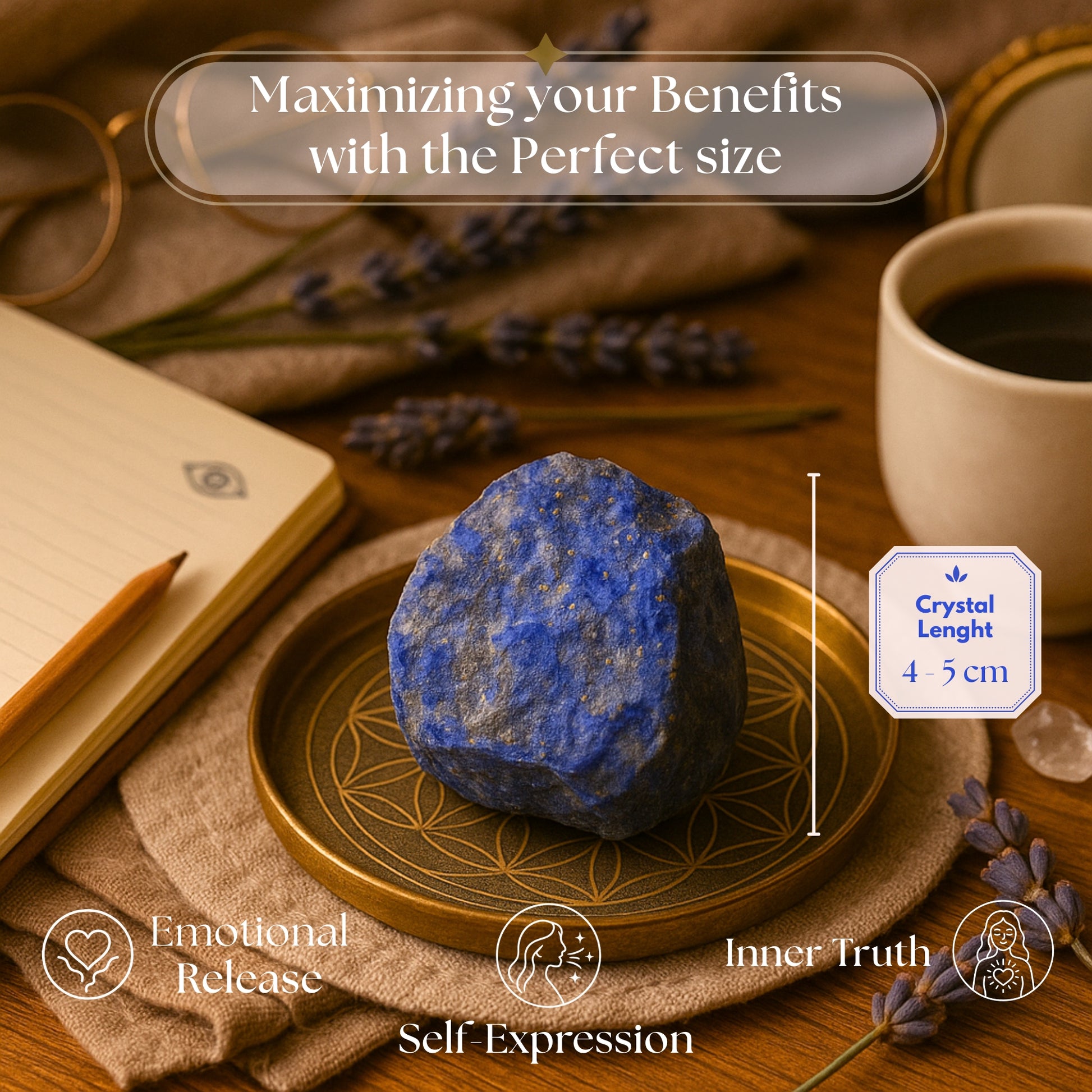NATURAL RAW LAPIS LAZULI – Mined from the mystical mountains of Afghanistan, each raw Lapis Lazuli crystal reveals deep royal blue tones speckled with golden pyrite. Its rich texture and ancient beauty speak to the wisdom it carries within.