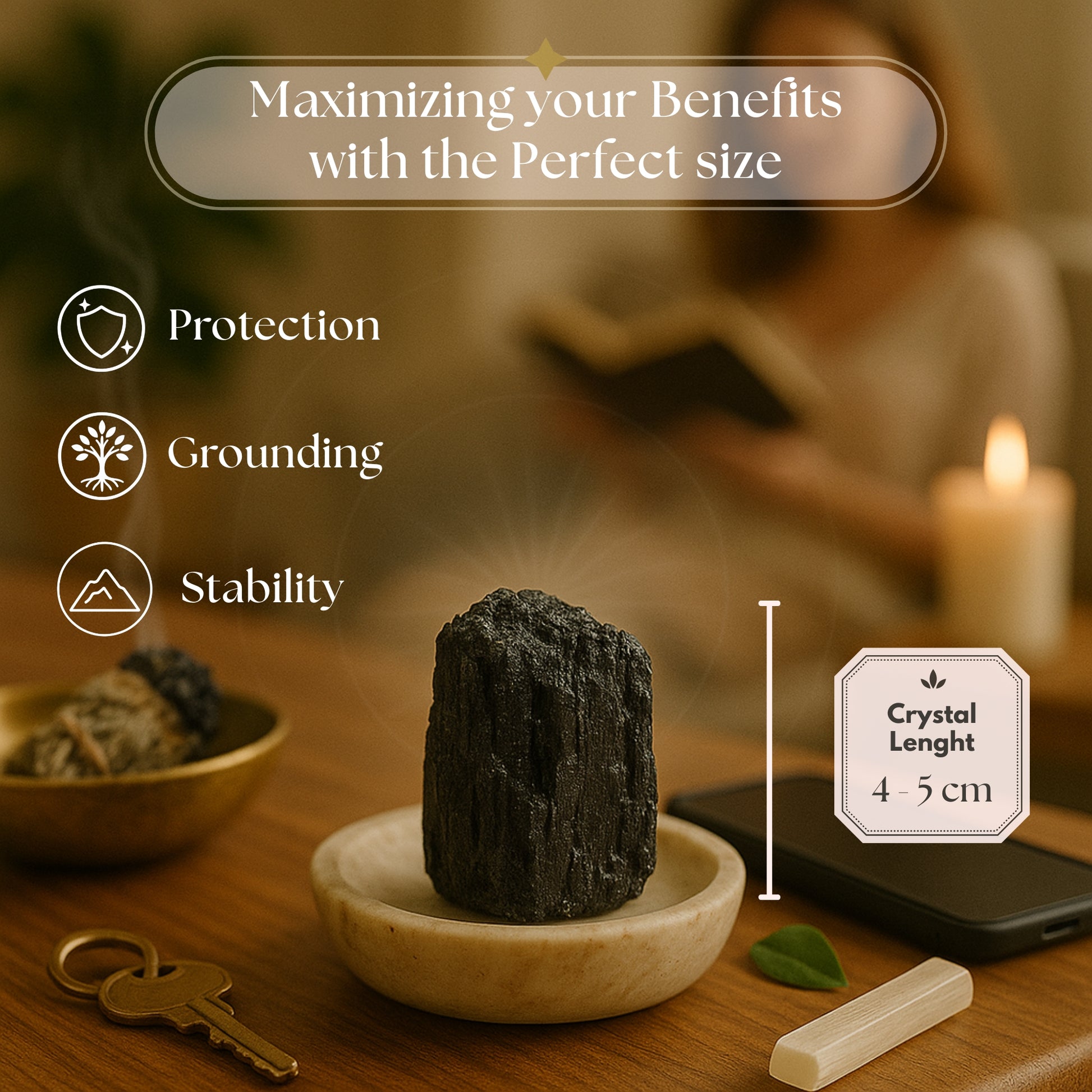 PROTECTION, GROUNDING & ENERGY SHIELD – Known as one of the most protective stones, Black Tourmaline shields against negative energy. A favorite for grounding rituals and energy cleansing, it supports emotional balance, energetic stability, and mental resilience.